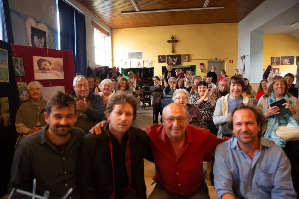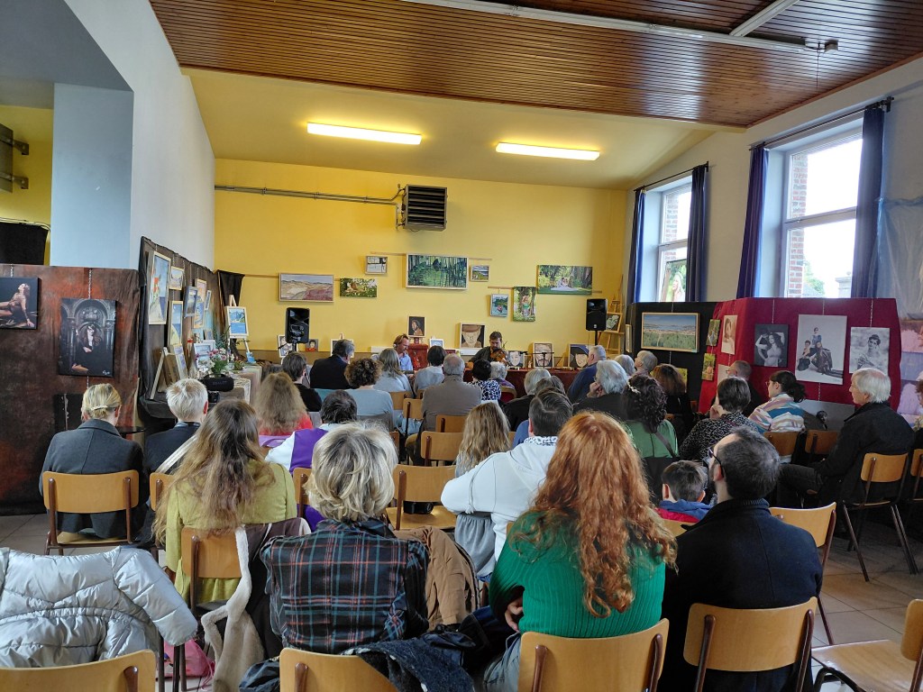 L’expo a été un franc succès, du monde au vernissage, du monde le samedi, du monde le dimanche, notamment pour venir voir mon fils François qui chantait en français et en espagnol, accompagné par Jean-François Durdu au violon et Olivier Terwagne à l’accordéon.
