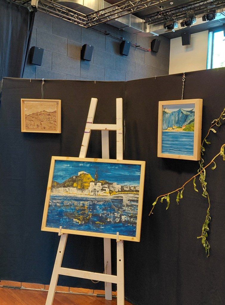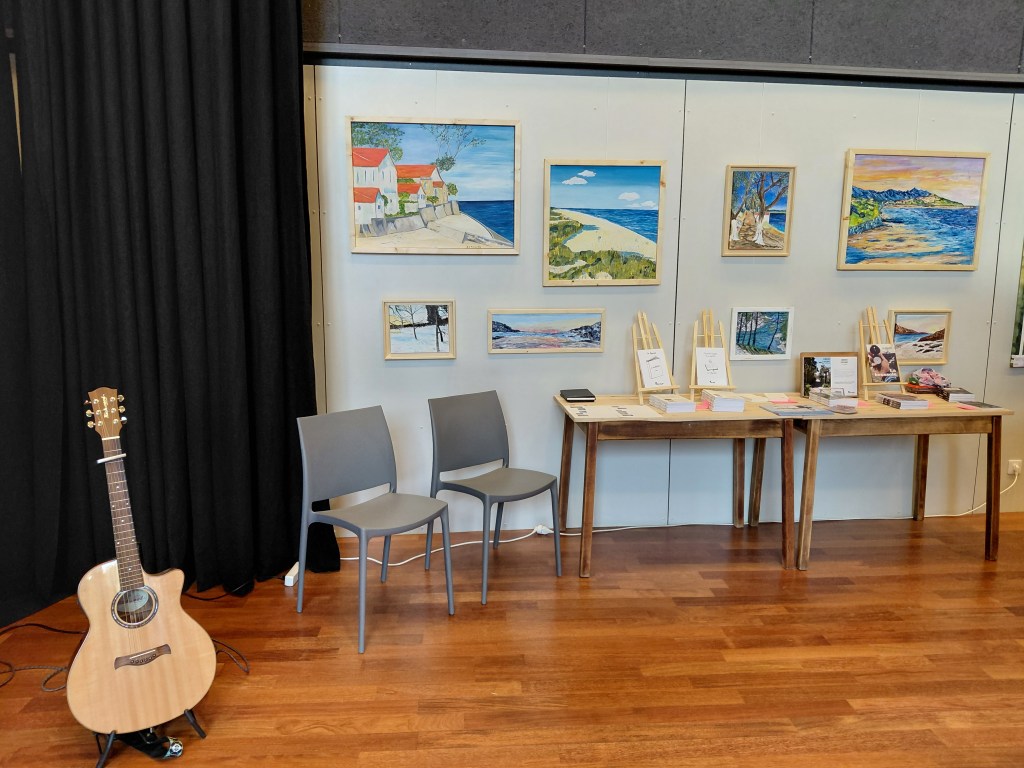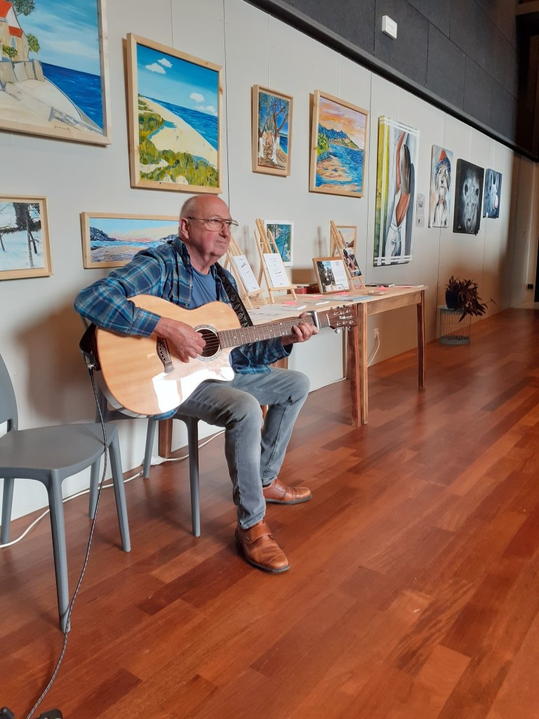 A l’invitation de Claudine (CLO ART), je participe à son exposition intitulée « Tout naturellement ». Dans la foulée, je lui propose d’assurer une petite animation musicale avec ma guitare.