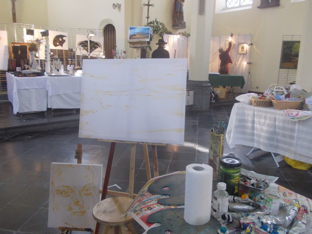 Cette fois, dans l’Eglise de Doische, dans une formule où l’exposant travaille en direct sur un projet…